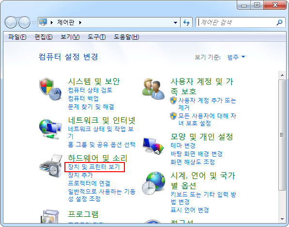 - A. ÇÁ¸°ÅͰ¡ ¿¬°áµÈ PC·Î À̵¿Çؼ Á¦¾îÆÇÀ» ¿°í Çϵå¿þ¾î ¹× ¼Ò¸® -> ÀåÄ¡ ¹× ÇÁ¸°ÅÍ º¸±â¸¦ Ŭ¸¯