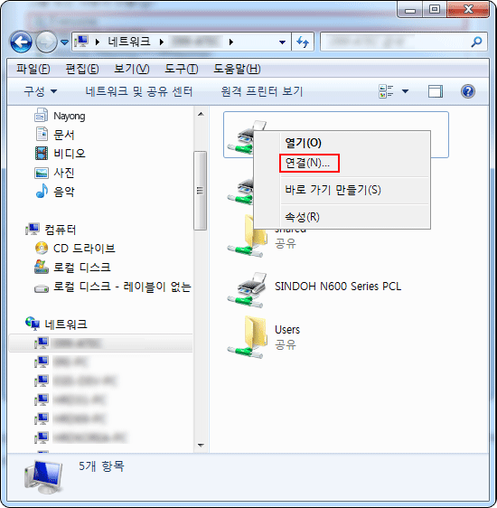 ÇÁ¸°ÅͰ¡ º¸ÀÔ´Ï´Ù. °øÀ¯ÇÒ ÇÁ¸°Å͸¦ ¼±ÅÃÇÏ°í ¸¶¿ì½º ¿ìŬ¸¯ -> ¿¬°áÀ» Ŭ¸¯ÇÕ´Ï´Ù.