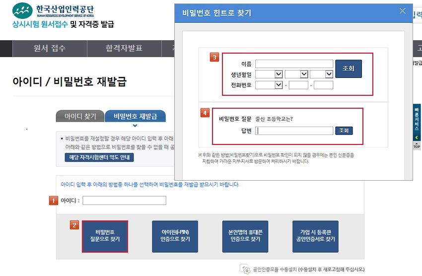 - ¡Ø 4°¡Áö ¹æ¹ýÀ¸·Î ºñ¹Ð¹øÈ£¸¦ ãÀ» ¼ö ¾øÀ» °æ¿ì °³ÀÎÁ¤º¸º¸È£¸¦ À§ÇÏ¿© ÁöºÎ(Áö»ç)¸¦ ¹æ¹®Çϼž߸¸ ºñ¹Ð¹øÈ£¸¦ È®ÀÎÇÒ ¼ö ÀÖ½À´Ï´Ù.