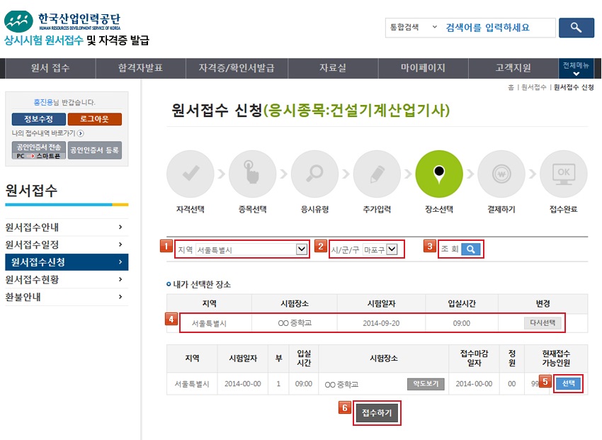- 1. Á¢¼öÁ¾¸ñ, °ËÁ¤¼ö¼ö·á, ½ÃÇèÀå¼Ò, ½ÃÇèÀϽà ȮÀÎ