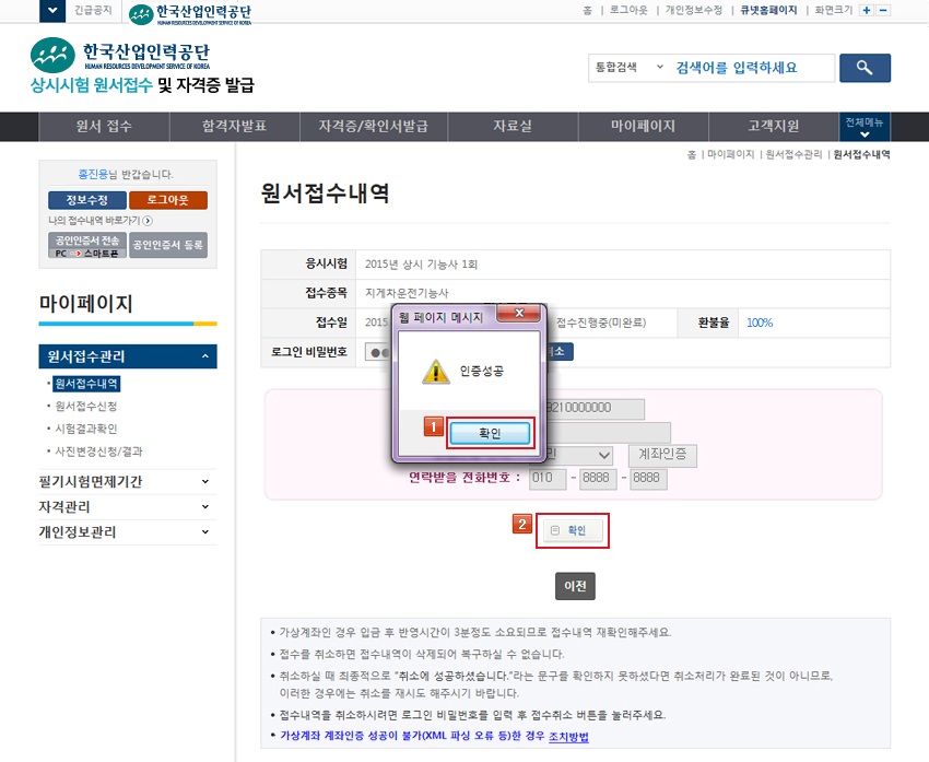 - 1. °èÁÂÀÎÁõÀÌ ¼º°ø½Ã, ÀÎÁõ¼º°ø ÆË¾÷âÀÌ ³ªÅ¸³³´Ï´Ù. È®ÀÎ ¹öư Ŭ¸¯